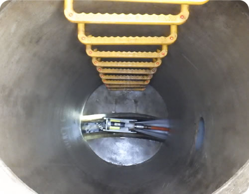当社では、主に自走式カメラを用いて、管内の現状確認を行っています。カメラ車の操作は経験を積んだベテランスタッフが対応し、破損などの異常を見落とすことのないよう徹底調査を心がけております。異常が発見された際には、作業条件や破損の状況に応じた最適な工法をご提案。光硬化工法など最先端の技術を駆使して、老朽化した下水道管を開削することなく甦らせます。その他、下水道の入り口であるマンホールの補修・改築も大切な業務となっています。